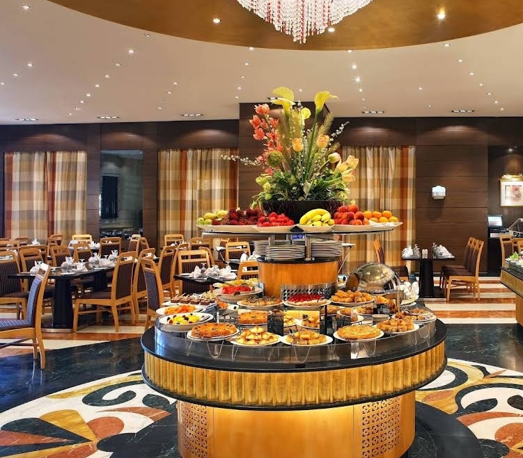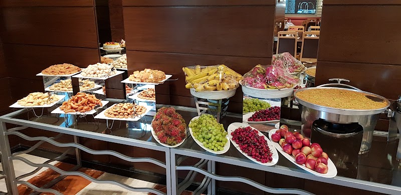بوفيه متوفر طوال اليوم في فندق "المروة ريحان" الذي يشمل أطباقًا عالمية متنوعة ومحطات طهي مباشرة