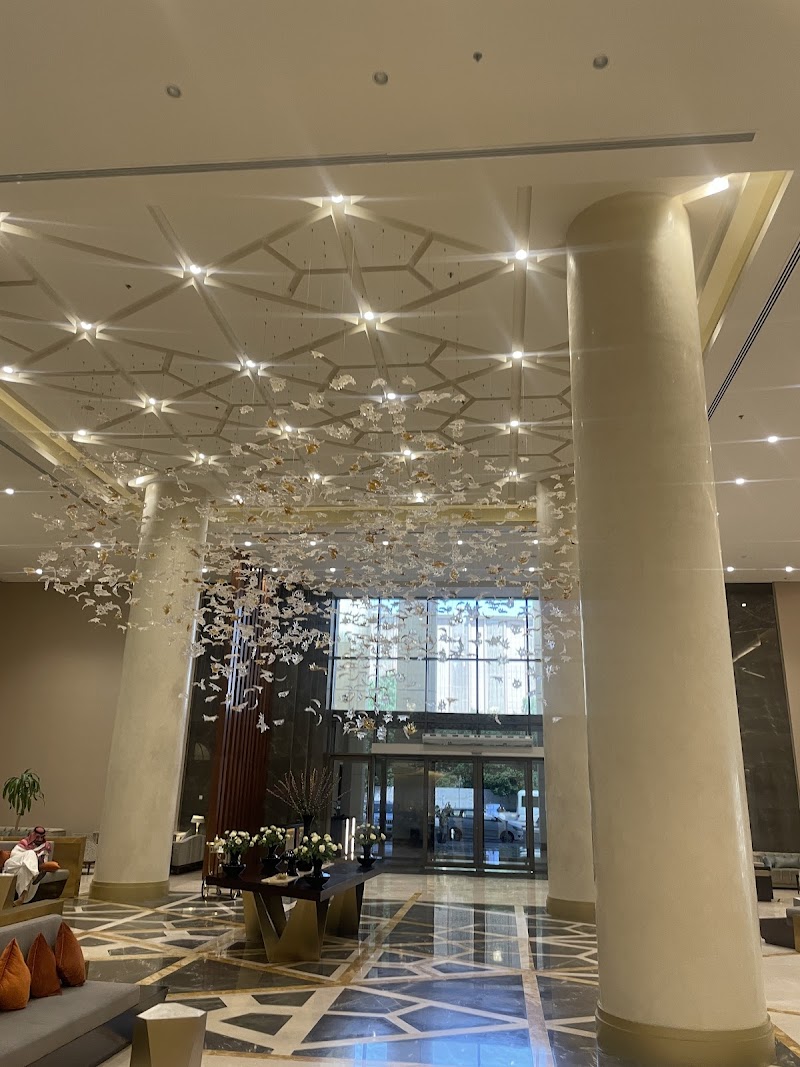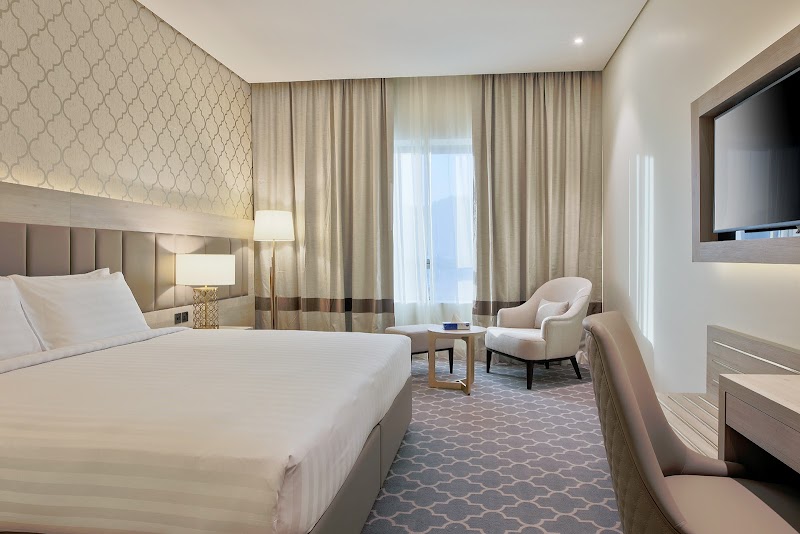 Elegant rooms & suites in a high-end hotel offering an international restaurant & a prayer room.