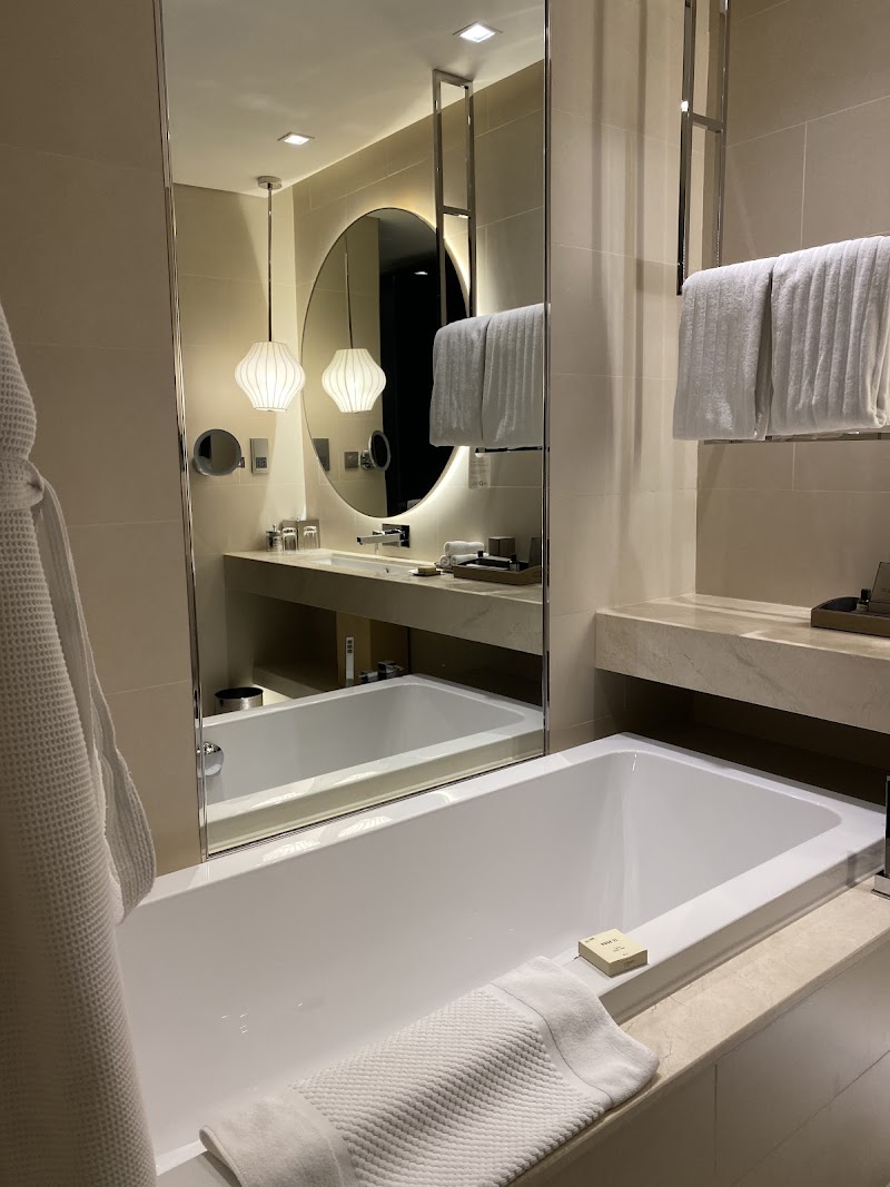 High-end hotel featuring polished quarters, 3 restaurants & an indoor pool, plus a spa.