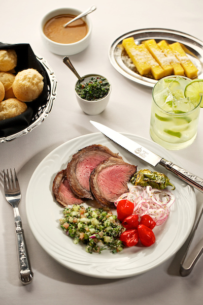 سلسلة مطاعم برازيلية راقية تشمل بارًا كبيرًا للسلطات ومائدة بوفيه مفتوحة من اللحوم التي تُقطَّع بجوار المائدة