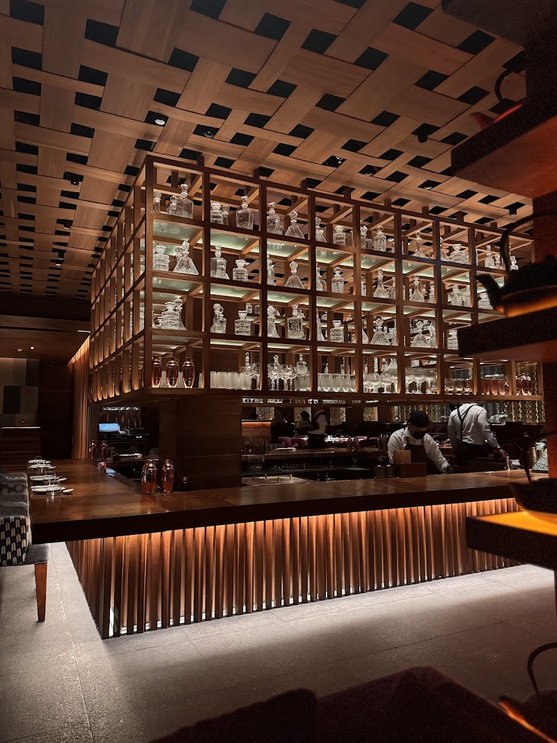 مكان فاخر ياباني يُعدّ السوشي والمأكولات البحرية وأطباق لحم الواغيو والموكتيلات والعصائر المصنوعة محليًا