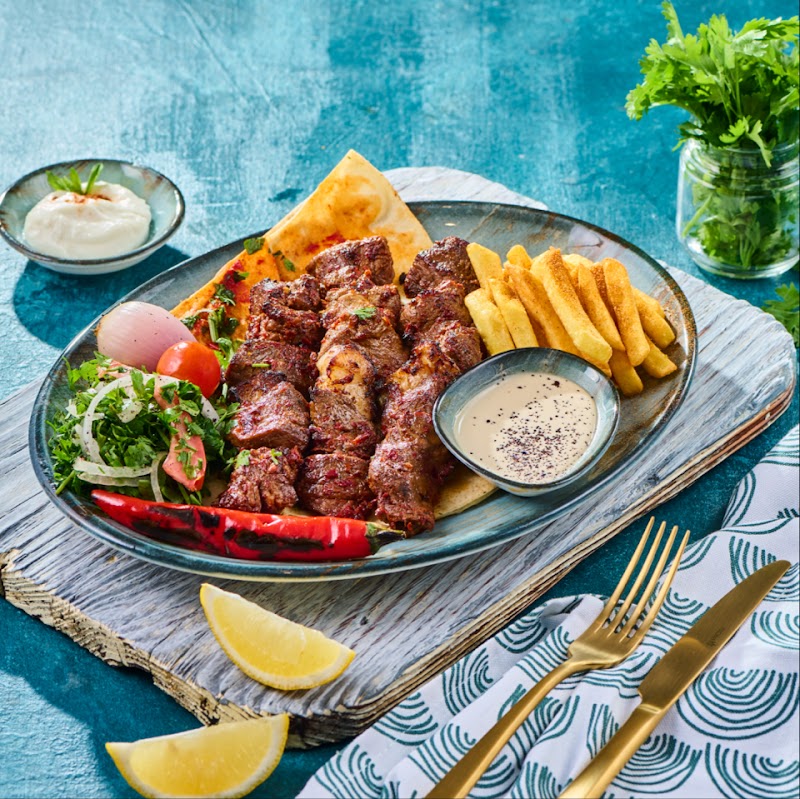 مطعم عصري يقدم أطباق الكباب والأرز التقليدية، بالإضافة إلى حلويات مصنوعة يدويًا
